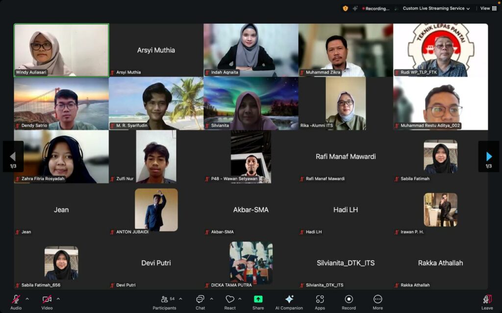 DTK NEWS-Rabu, 26 Maret 2025 telah dilaksanakan acara Bincang Bersama Alumni yang merupakan acara webinar yang membahas mengenai topik menarik seputar dunia Teknik Kelautan, peluang karir, dan pengalaman langsung dari para alumni.