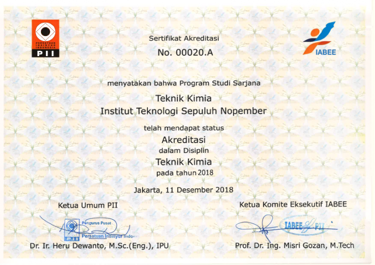 Program Studi (Prodi) S1 Teknik Kimia ITS senantiasa berupaya untuk meningkatkan mutu pendidikan dan