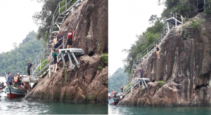 Rangkaian wisata APTEKIM di Pulau Mandeh berlanjut dengan loncat ke Laut dari ketinggian