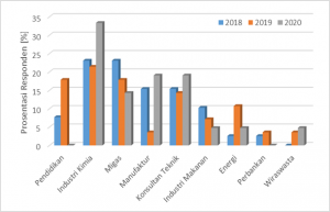 Gambar 1 Lingkup kerja alumni Prodi S1 Teknik Kimia ITS berdasarkan hasil survey yang di lakukan pada tahun 2018-2020.