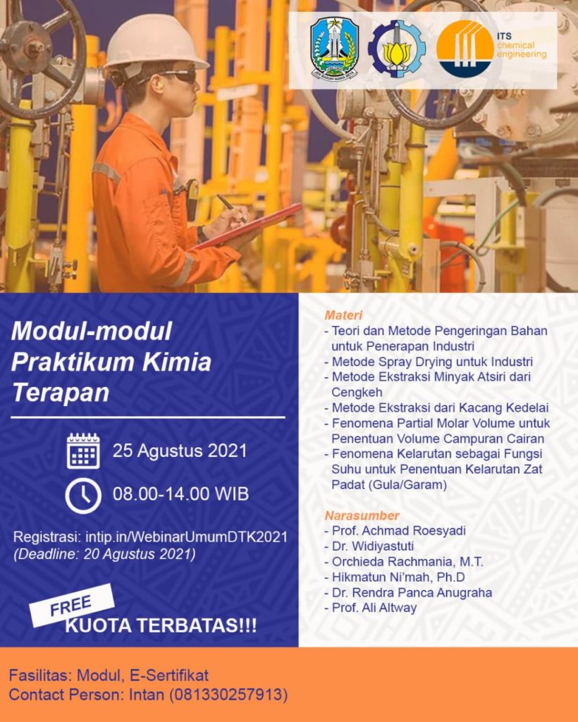 Berikut beberapa kegiatan pengabdian masyarakat yang dilakuakan oleh dosen dan mahasiswa departemen teknik kimia Institut Teknologi Sepuluh Nopember