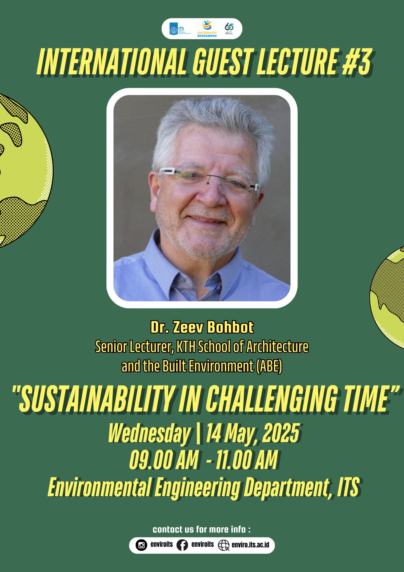 Department of Environmental Engineering ITS Surabaya proudly presents an International Guest Lecture Series 2025 Session 3. The topic will be “Sustainability in Challenging Times.”