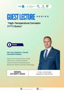 12 October 2025 – Room MT 204 was once again filled with students and researchers on 29 September 2025 for a Guest Lecture Series featuring DSc. Eng. Wojciech J. Nowak, an Associate Professor widely recognized in the field of materials and corrosion. Organized under the supervision of Ms. Azzah, the lecture focused on a crucial topic in materials engineering: the fundamentals of High-Temperature Corrosion (HTC).