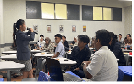 Gambar kegiatan kuliah daring di MT 107. Kuliah luring  hari pertama, Senin, 5 Mei 2025 di Ruang sidang Lobby DRPM Gedung RC lt L (56 peserta mahasiswa S1); Hari kedua, 6 Mei 2025 ruang MT 107 (48 peserta S1); hari ketiga & Mei 2025, di Ruang Sidang MT 204 (peserta 80 mahasiswa S1 dan S2)