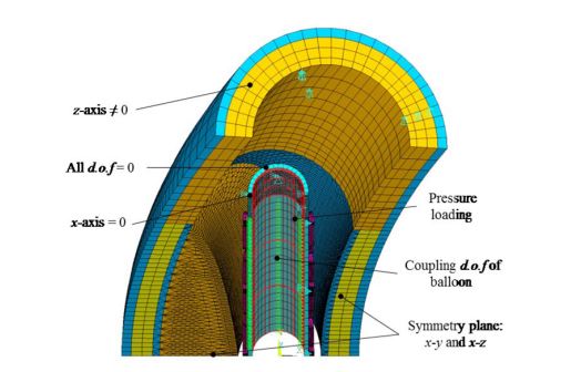 The utilization of Asymmetric stent for recovering atherosclerotic diseases, particularly non-symmetric obstruction, is a quite challenging breakthrough treatment. In terms of eccentric plaque, the non-uniform stiffness of arterial layer causes the increasingly complex issues of vulnerability. This study investigated the vulnerability of the interaction between the Asymmetric stent and the surrounding arterial layer using structural transient dynamic analysis in ANSYS. Four combinations of stent deployment, i.e. the Sinusoidal stent expanded by the offset balloon, the Sinusoidal stent expanded by the ordinary cylindrical balloon, the Asymmetric stent expanded by the offset balloon, and the Asymmetric stent expanded by the ordinary cylindrical balloon, are generated for this comparative study. Multilayer material properties from recent in vitro experiments are adopted for the surrounding arterial layer, such as a fibrous cap, lipid core, diseased-healthy intima, and diseased-healthy media
