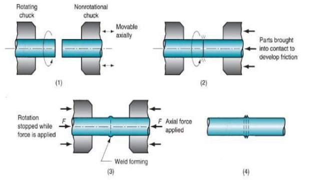 Pengelasan gesek atau disebut dengan friction welding adalah sebuah proses pengelasan solid-state dimana penyambungan terjadi oleh panas akibat perputaran permukaan bahan yang akan dilas terhadap permukaan lainnya di bawah pengaruh tekanan aksial (tekanan gesek dan tekanan tempa). Proses pengelasan ini sangat dipengaruhi oleh kecepatan putar, durasi gesekan, tekanan aksial, sifat material dan kondisi permukaan benda kerja. Penelitian ini memvariasikan kecepatan putar sebesar 300 rpm, 520 rpm dan 750 rpm dalam durasi gesekan 15 detik dengan diberikan tekanan gesek sebesar 37,51 kgf/cm2 sampai mencapai temperatur tertentu, kemudian diberikan tekanan tempa sebesar 75,02 kgf/cm2 . Material yang digunakan yaitu High density Polyethylene-300 (HDPE) Pengujian mekanik yang dilakukan adalah uji tarik dengan membandingkan HDPE yang disambung menggunakan lem perekat.