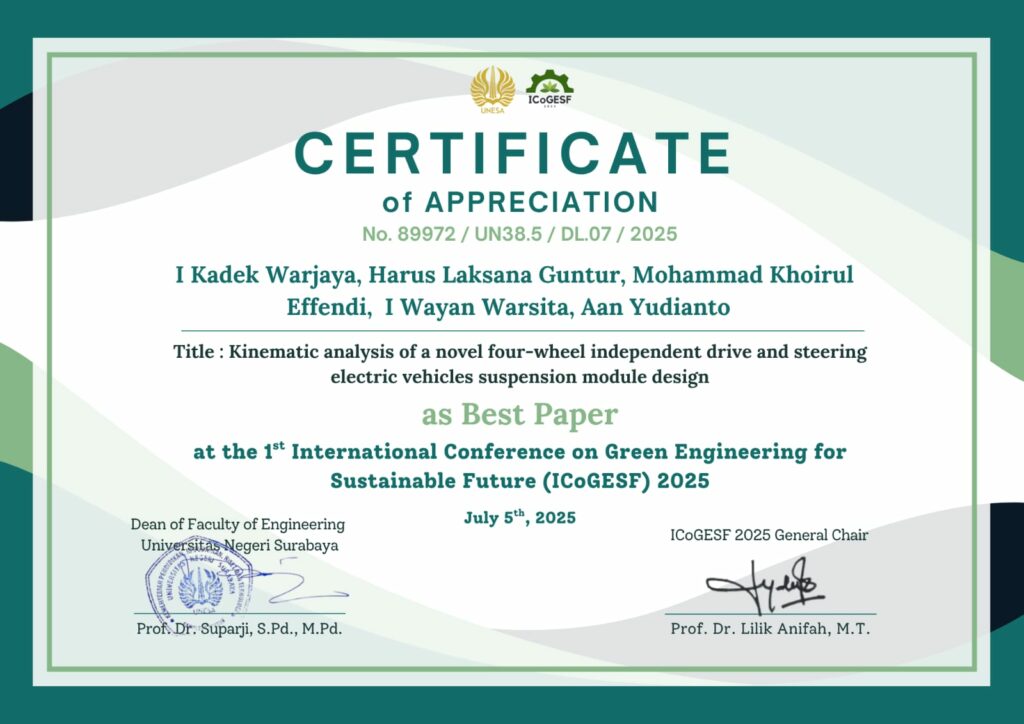 Tim Penelitain : Arif Wahyudi ST., MT., PhD.