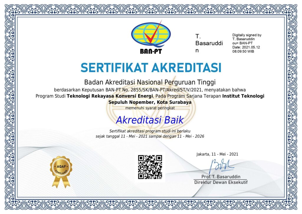 Program Studi Sarjana Terapan (D4) Teknologi Rekayasa Konversi Energi telah dinyatakan sebagai progam studi dengan Akreditasi Baik oleh BAN-PT pada tahun 2021 sampai 2026.