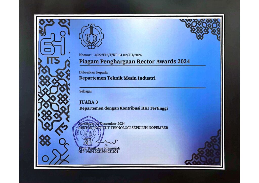 Departemen Teknik Mesin Industri menjadi Departemen dengan Kontribusi HKI Tertinggi