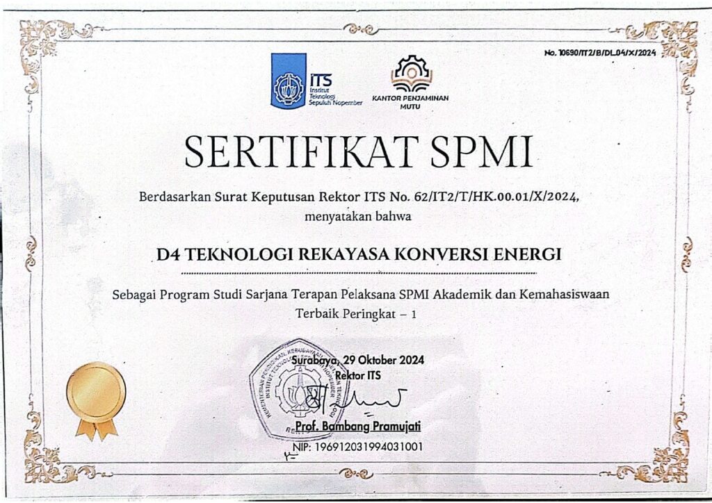 Prodi Sarjana Terapan Teknologi Rekayasa Konversi Energi menjadi Prodi Sarjana Terapan Pelaksana SPMI Terbaik tahun 2024