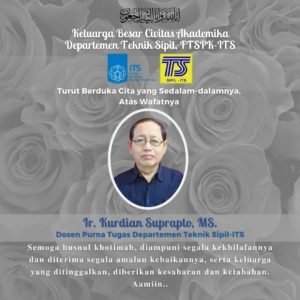 Civitas Akademika Departemen Teknik Sipil kembali berduka, telah wafat Dosen Purna Tugas Departemen Teknik Sipil ITS, Ir. Kurdian Suprapto, MS. Semoga beliau husnul khotimah dan keluarga yang ditinggalkan diberi ketabahan.. Aamiin..