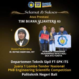 Wisuda ke-131 ITS Program Studi Sarjana dan Pascasarjana Departemen Teknik Sipil FTSPK-ITS dijadwalkan pada hari Sabtu, 12 April 2025.