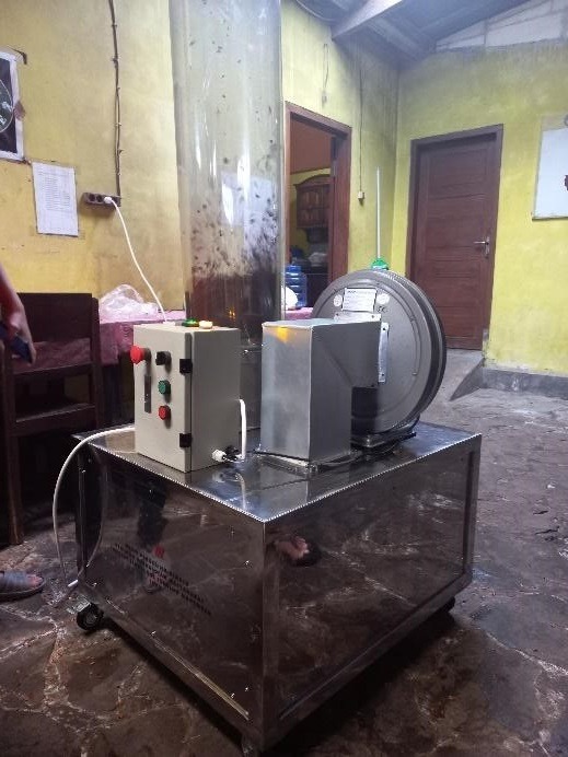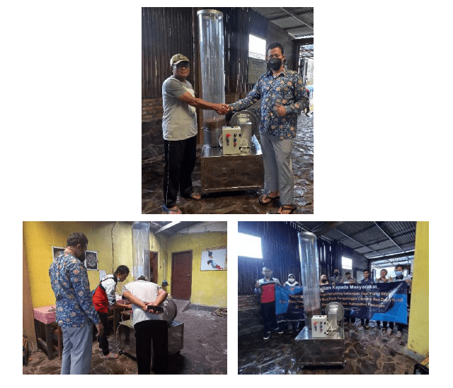 After the machine has completed several internal team tests and is declared ready for use, the team conducts a drying test process which is carried out directly at the partner’s residence. From this ABDIMAS activity, it can be concluded that with a cold drying machine, the time needed to dry 4 kg of wet coffee husks to reach the standard of cascara tea with water content below 10% is 180 minutes. In addition, the dry cascara product produced has a better quality than sun drying and oven drying with temperatures above 50oC. The resulting cascara has a better color, namely a reddish color and has a fresher taste when brewed.