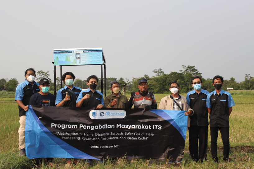 Therefore, through a community service scheme carried out by the High Voltage Laboratory of the Department of Electrical Engineering, ITS helped control insect and rat pests by making Solar Cell-Based Automatic Pest Control Devices for farmers in Pranggang Village, Kediri, East Java. The implementation of this community service is expected to help farmers in Pranggang Village to control pests so that crop yields can increase and there is no need to worry about the harmful effects of using pesticides on plants.