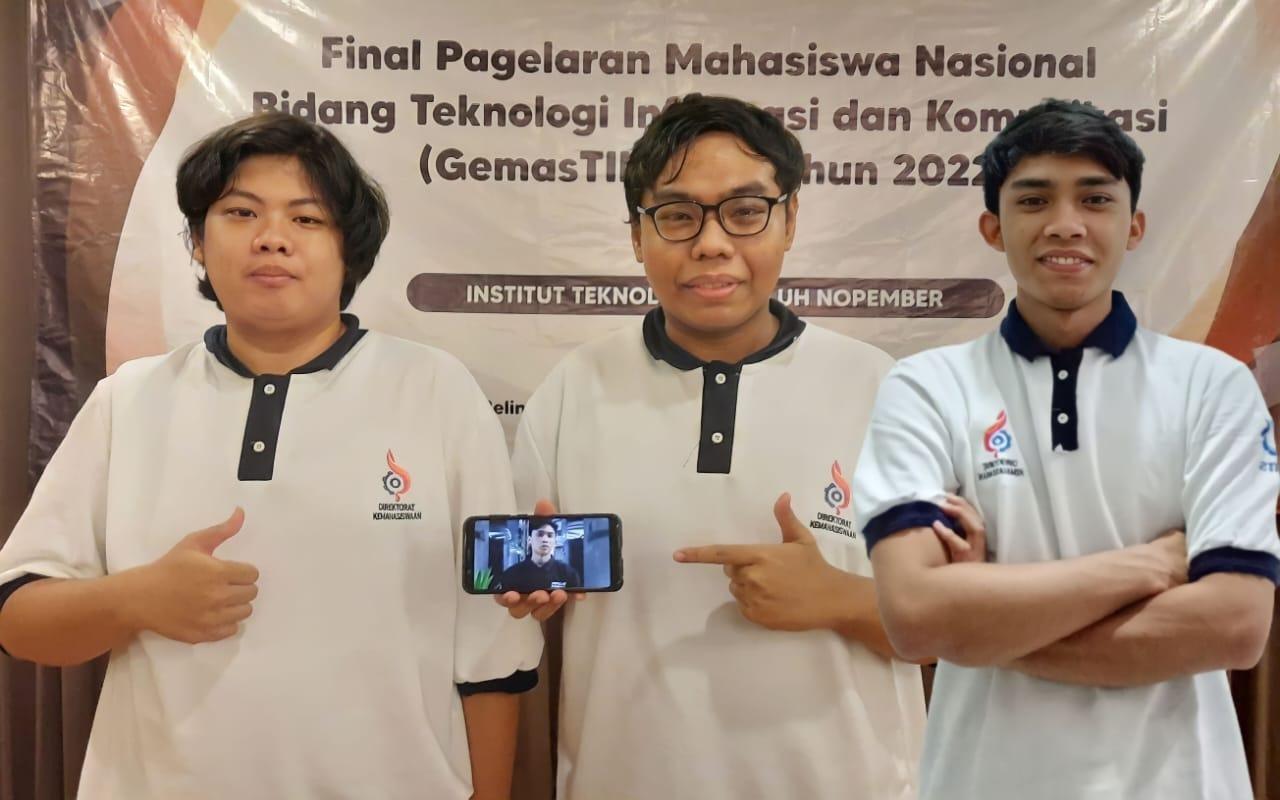 (dari kiri) Daanii Nabil Ghinannafsi Kusnanta, Muhammad Nur Abdurrauf, dan Deka Julian Arrizki yang tergabung dalam tim mahasiswa ITS penggagas aplikasi KIAD