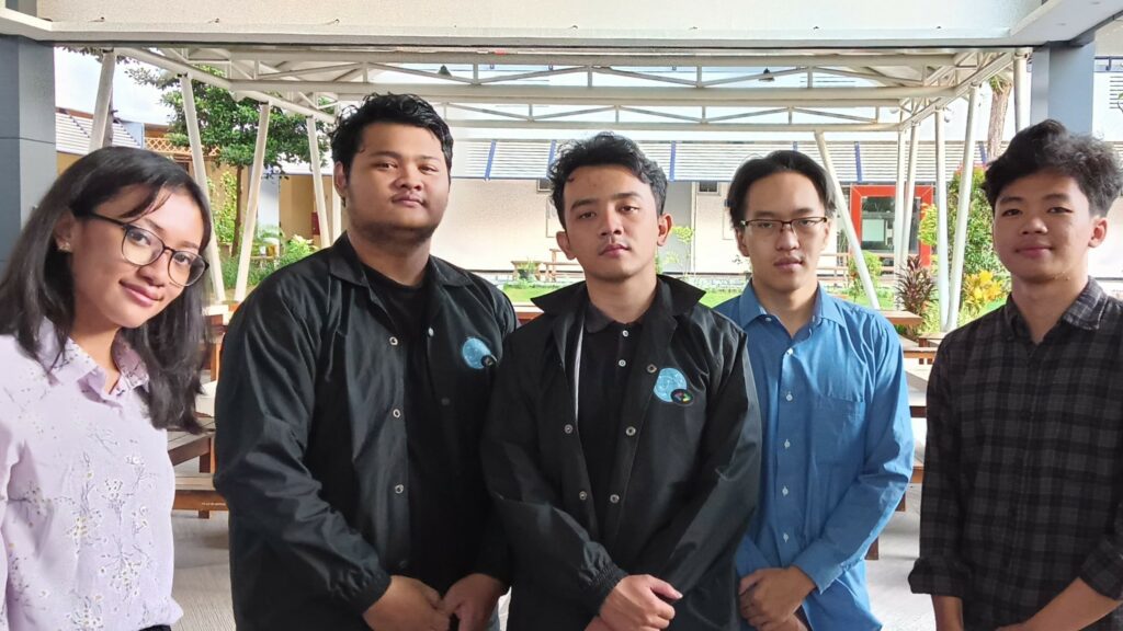 Offline Meeting of the Unsmoke Development Team at ITS: Clarissa Luna Maheswari (left), Nathanael Putra Ganata (second from the right), Muhammad Farrih Mahabbataka Arsyada (right), along with two students from Telkom University.